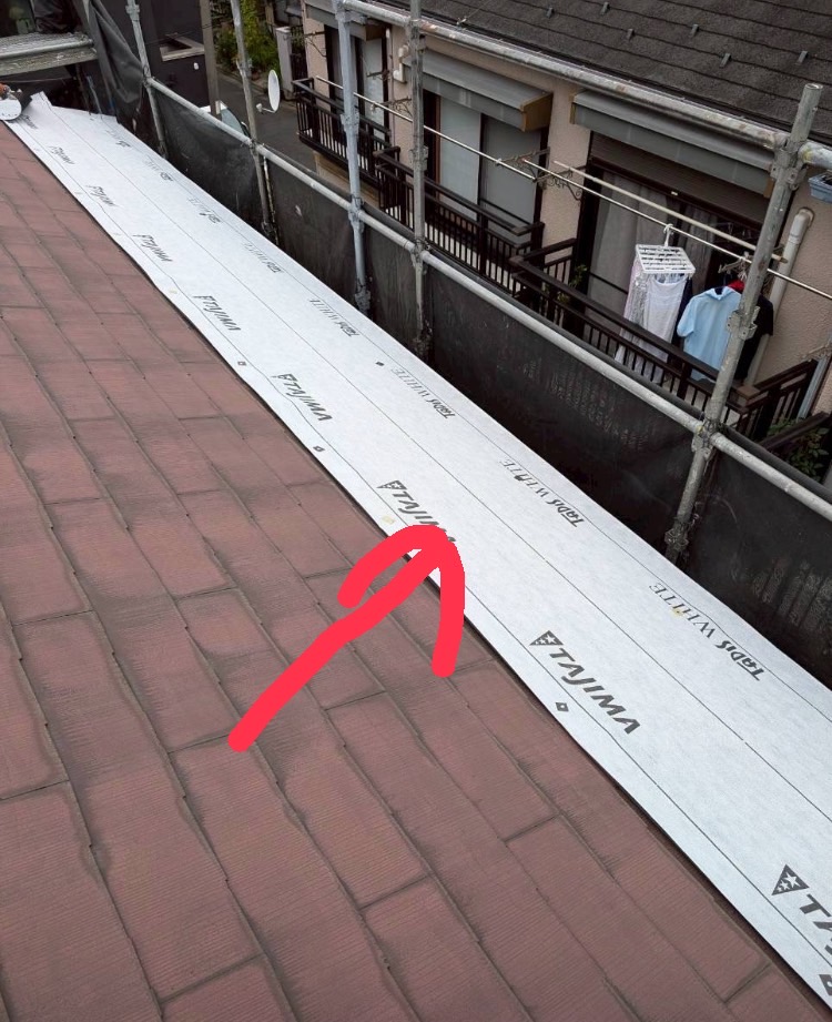 この白いシートが、雨水の侵入を防ぐ重要な役割を果たします。